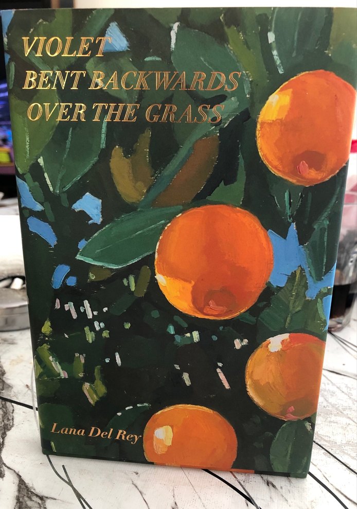 Lana Del Rey'in "Violet Bent Backwards Over the Grass" adlı şiir kitabı, turuncu meyve desenli sanatsal kapağa sahiptir.
