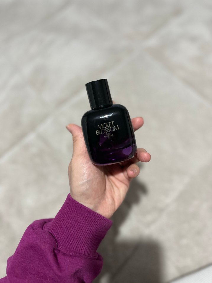 Violet Blossom kadın parfümü, siyah kapaklı koyu mor şişede, çiçeksi ve zarif bir koku sunar. Orijinal ürün sadece kutusu yok belki iki belki üç kere falan sıkmışımdır bebeğim alerjik olduğu için kullanamıyorum