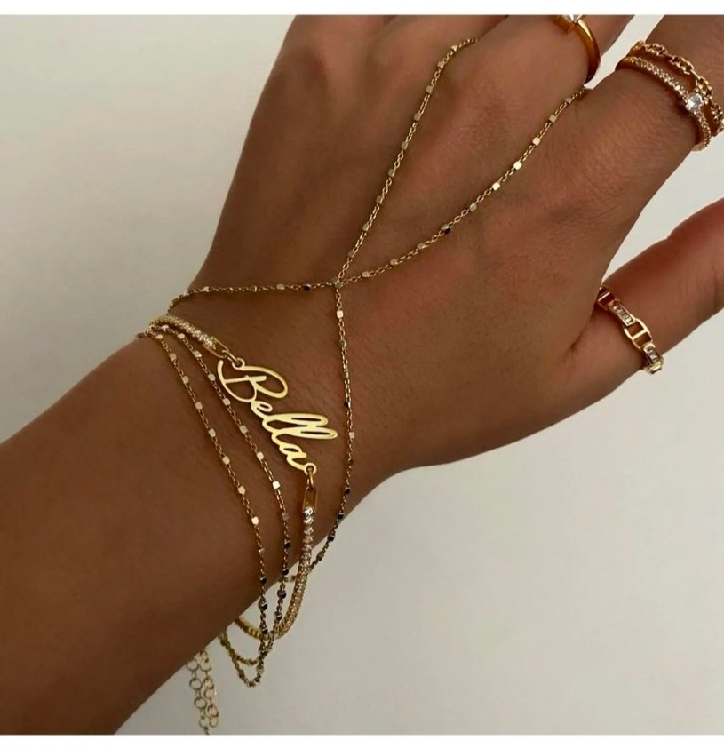 Zincir detaylı, yılan desenli altın renkli el zinciri, günlük kullanıma uygun cesur ve göz alıcı bir tarz sunar. ✨