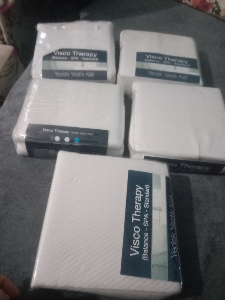 Visco Therapy baskılı beyaz yatak koruyucu, gri desenli ve yumuşak dokulu, yatağınızı korur ve konfor sağlar. ️
