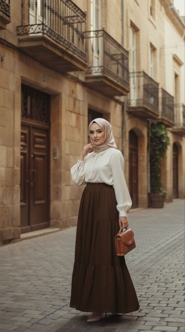 viskon fırfırlı etek-kahverengi