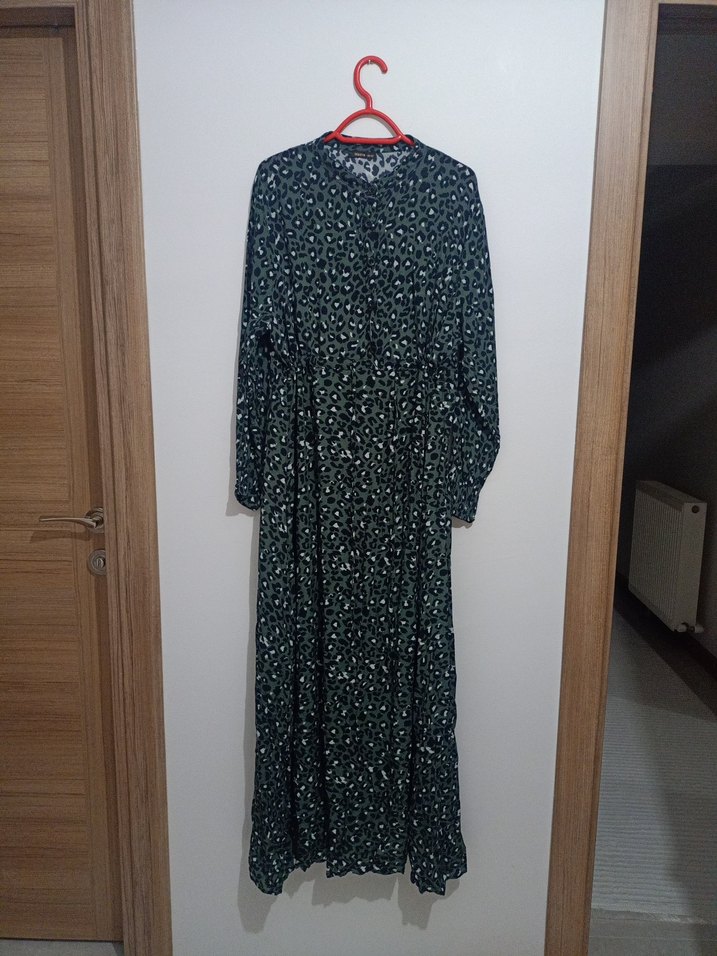 Kumaşı çok rahat viskon,beli ve kolları büzgülü elbise. 1 kez giydim