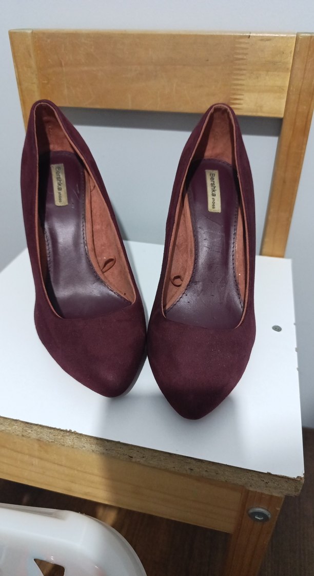 Bordo süet malzemeden yapılmış, minimal bohem stilettolar. Karanlık tonlarda, desen içermeyen romantik gece ayakkabısı. 9 cm topuğu.. çok iyi durumda.