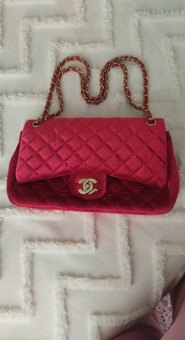 Pembe süet çanta, parlak yüzey ve zincir detaylarıyla klasik zarafeti modern stil ile buluşturur. Romantik akşamlar için ideal. orijinal ürün aşırı sağlam ve kaliteli sadece furmuar tutma kısmı düştü foto da gösterdim engel teşkil eden durumu asla yok alan kalitenin keyfini çıkarsın