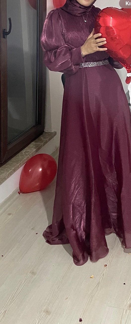 Bordo, drapeli, , uzun kol , uzun boy, desen içermeyen ve vücuda oturan abiye elbise, düğünler için uygun. 36/38 beden uyumlu az kullanıldı istemem için alındı bir kaç kere giydim eşarbı ile gönderim sağlayacağım
