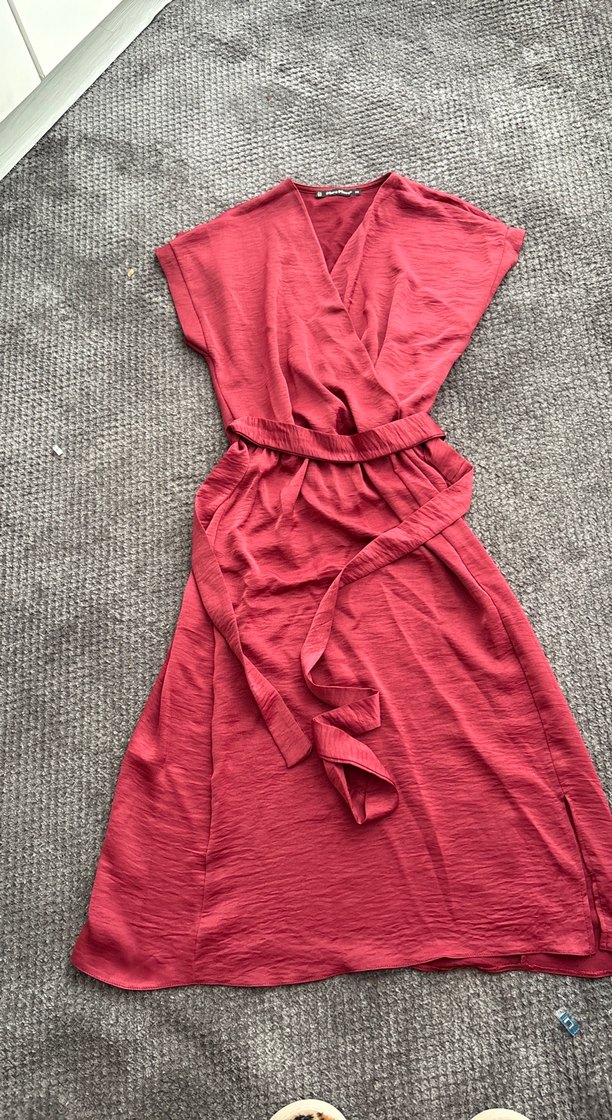 Vişne V Yaka Salaş saten midi Elbise