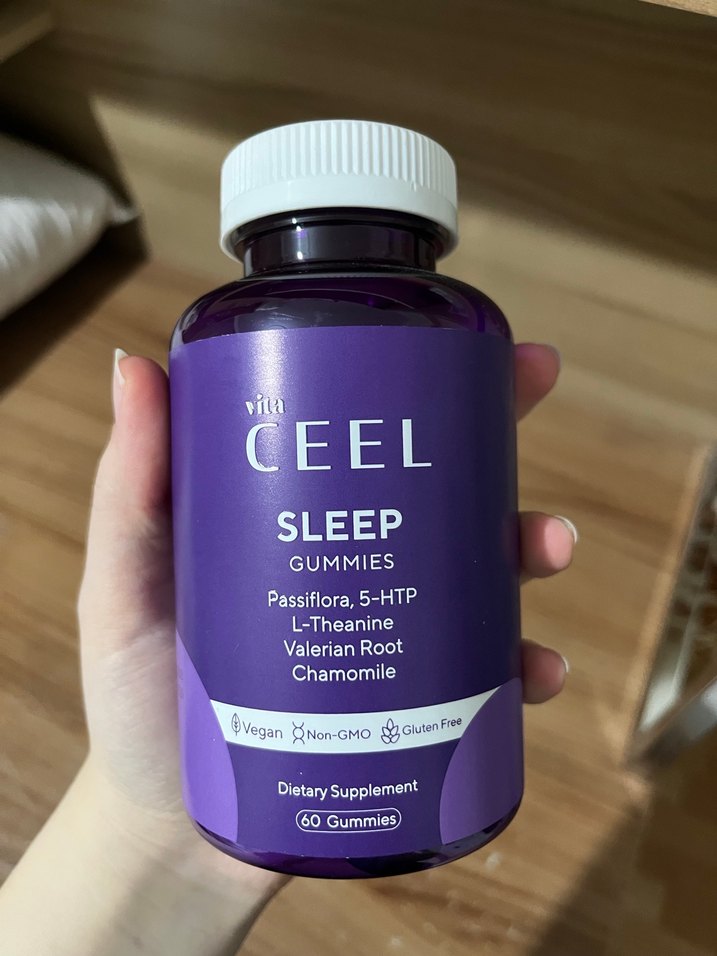 Vita CEEL Sleep Gummies, passionflower, 5-HTP, L-theanine, valerian kökü ve papatya içerir. 59 sakızlı takviye, vegan, GDO'suz ve glütensiz.