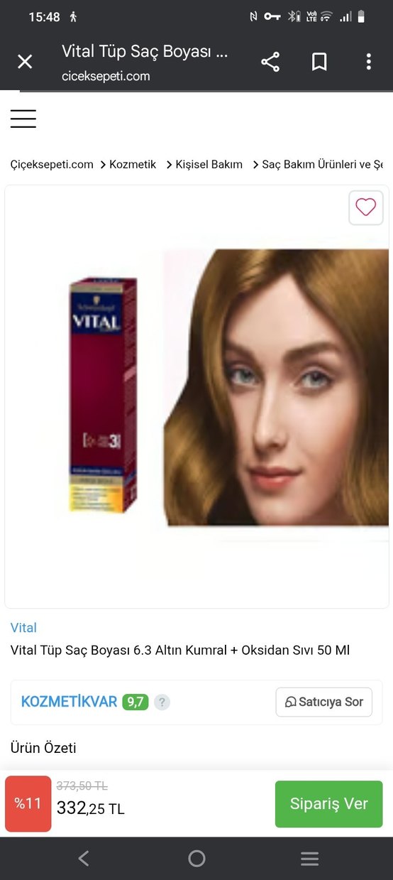 Vital 6.3 Altın Kumral saç boyası. Parlak, ipeksi dokulu cesur bir görünüm sağlar. ✨