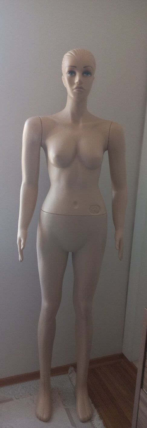 Bej renkli, desen içermeyen minimalist kadın vücut zinciri, çağdaş ve gündelik kullanıma uygun şık tasarım.✨ çok az kullanıldı, sağ ayağında bana gelirken kargodan yana kırılma olmuş.fotoğrafta belirtmeye çalıştım. bu kırıklık engel olmadı kullanmamıza. arkadan destekle problem yaşamadık. yalnız evde şark odamda yöresel kıyafet giydirerek kullandım, mağazada kullanılmadı. boyu oldukça uzun, ben 1.60 ım. yanında az çok belli oluyor mankenin boyu