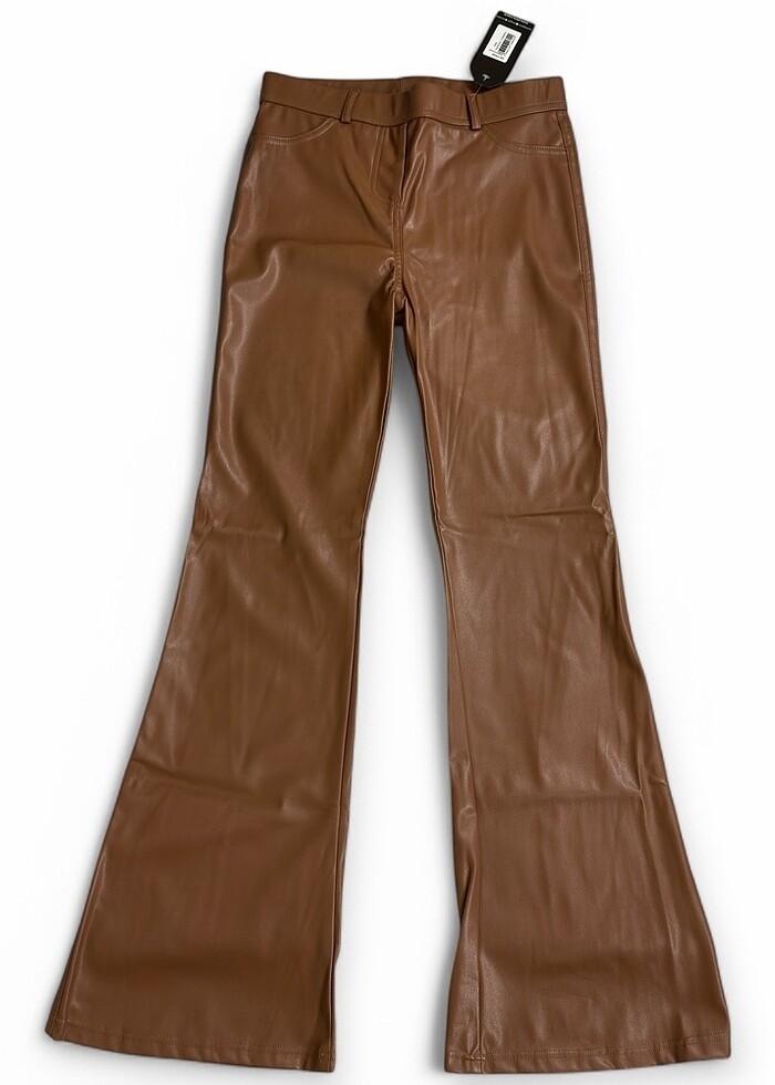 İspanyol Paça Vitrin Taba Suni Deri Pantolon.