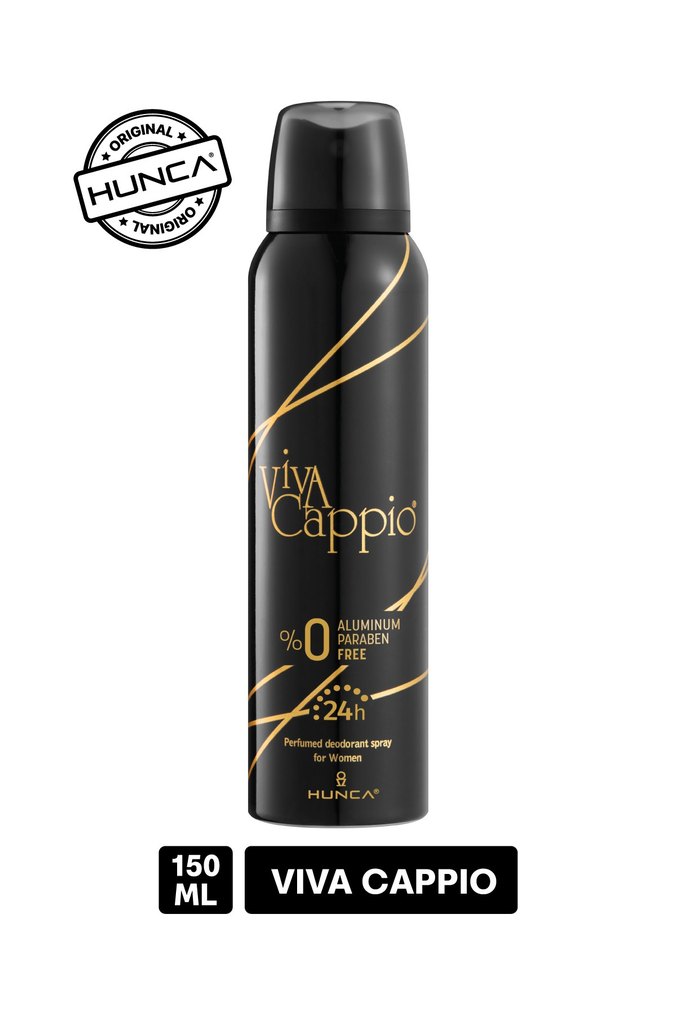 Viva Cappio kadın deodorant, alüminyum ve paraben içermez, 24 saat koruma sağlar ve parfümlü sprey formundadır.