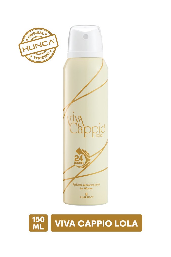 Hunca markasına ait 150 ML Viva Cappio Lola kadın deodorantı, 24 saat kalıcı koku sağlar. Parfümlü sprey formundadır ve ferahlatıcı etki sunar.