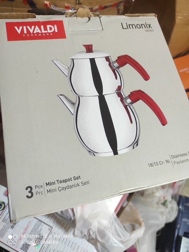 Vivaldi mini çaydanlık seti, kırmızı kulplu 3 paslanmaz çelik parçadan oluşur. Kolay demleme ve servis sağlar.