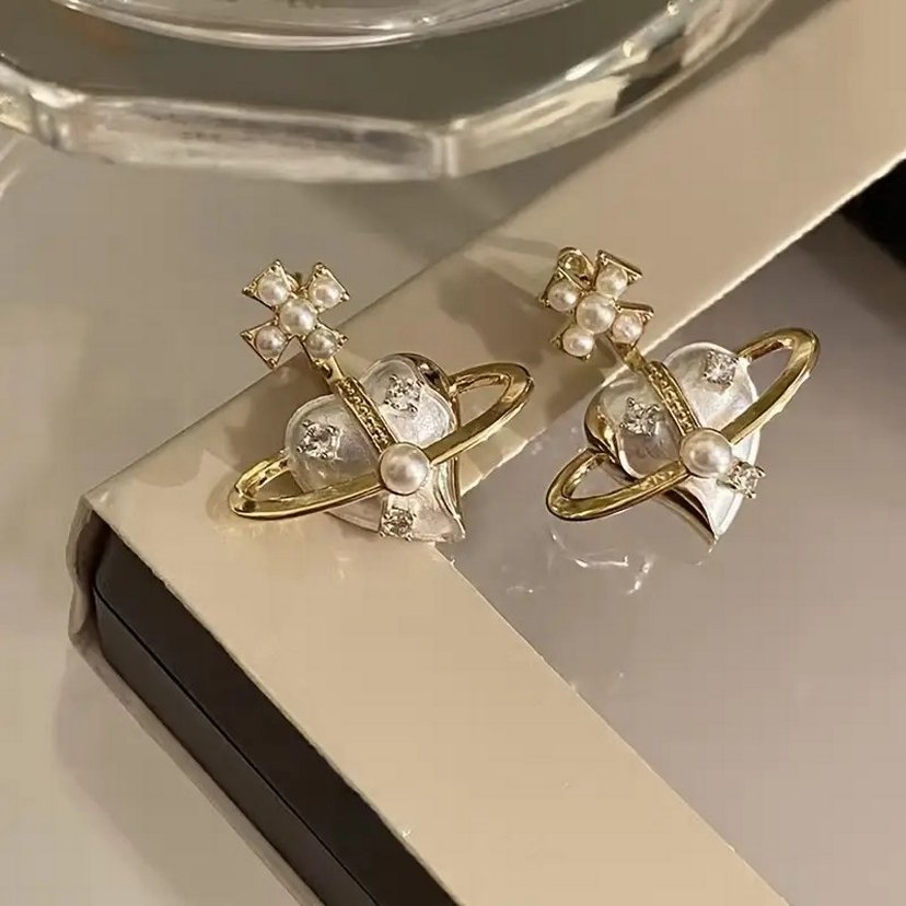Altın renkli mini küpeler, inci detayları ve işleme desenleriyle modern klasik tarzda, düğünler için uygun.