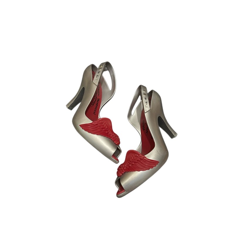 Gümüş renk kirmizi kanat detayli ayakkabi fotograflarda gozuken minik defo disinda bir sikintisi yoktur fiyata pazarlik payi dahildir teklif verebilirsiniz