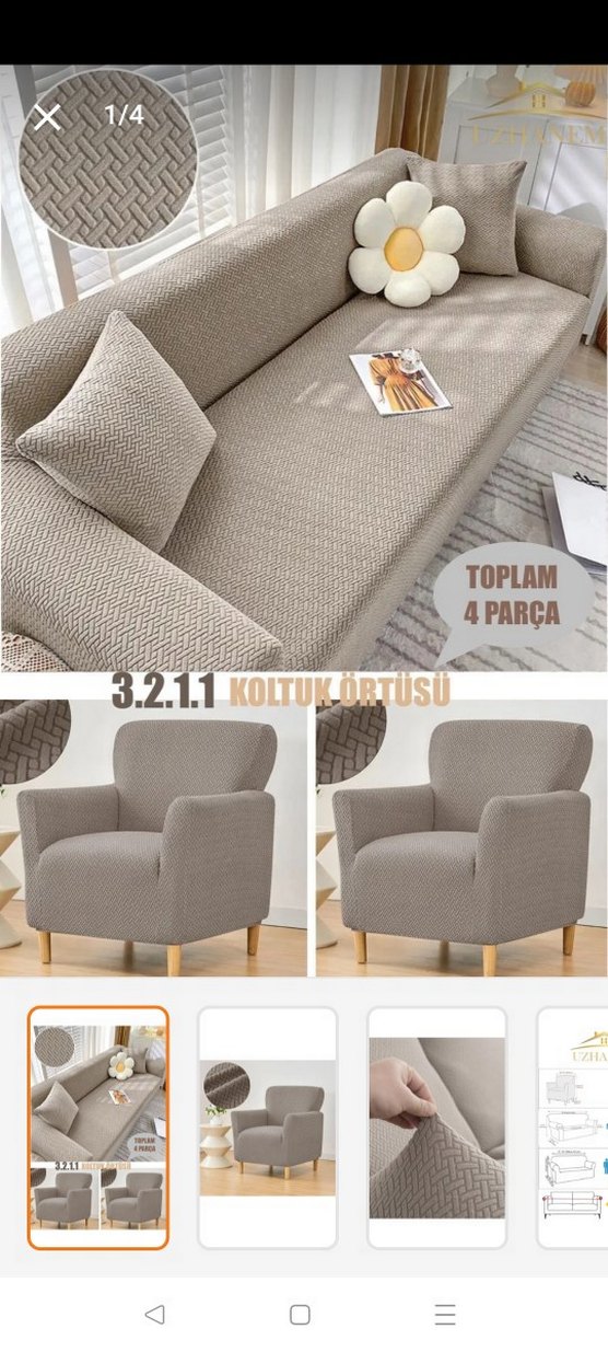 vizinrenkli, baskılı desenli, modern tarza uygun 4 parçadan oluşan koltuk örtüsü