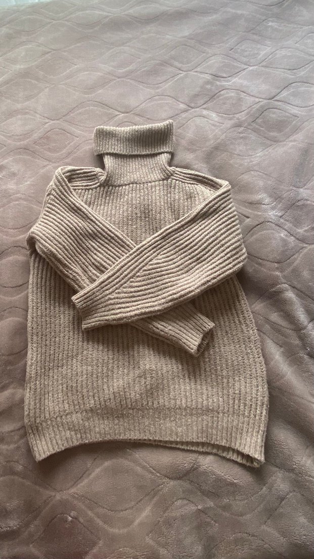 Boğazlı örgü kadın kazak, yumuşak triko kumaştan, bol kesim ve askılı kollu. Günlük kullanıma uygun, midi boyda sade tasarım. aşırı sıcak tutar yünlüdür