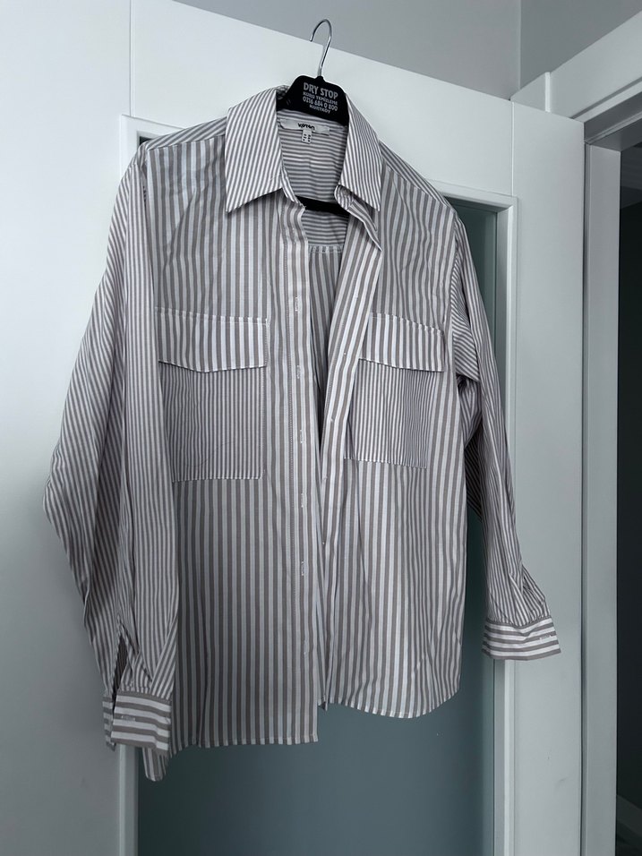 Vizon çizgili gömlek, uzun kollu ve düğmeli, normal boyda, regular fit kesim ile rahat bir sokak stili sunar.