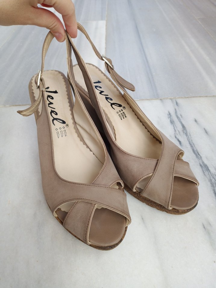 dolgu topuk kadın sandalet, tokalı ve açık burunlu tasarıma sahiptir. Pastel tonlarda, gündelik kullanıma uygun trend bir modeldir. Sadece topuk kısmında defosu vardır. Derisi yumuşak ve rahattır.