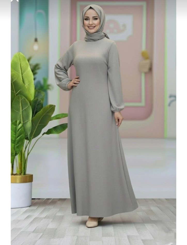 vizon gri renk kadın kemerli uzun elbise