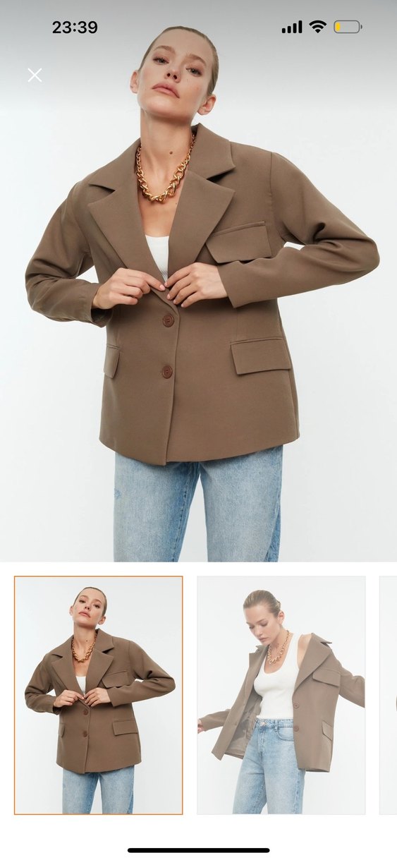 Vizon kumaş , yakası kesik ve düğmeli olan bu blazer ceket, uzun kollu ve midi boydadır. Ofis ve günlük kullanıma uygundur.