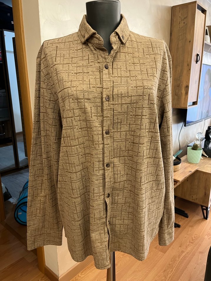 Vizon renkli, uzun kollu ve düğmeli erkek keten gömlek. Notlu yaka ve slim fit kesime sahip, ofis ve günlük sokak tarzına uygun.