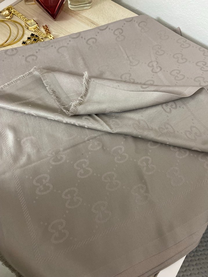 Kadınlar için gri vizon renk , ipeksi dokulu G desen tasarıma sahip şal, rahatlığı ve çağdaş stili klasik zarafetle birleştirir. ️