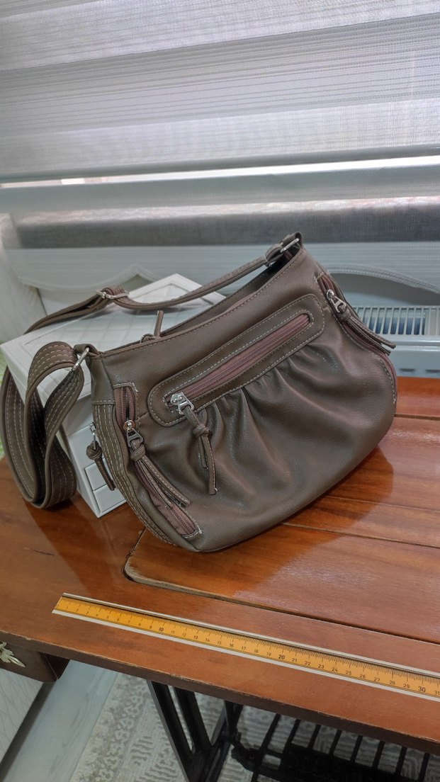 •fermuar rengi ftgrf kaynakli kahverengi cikmis ancak canta ile uyumlu renk tonunda. •alt fermuarini acarak ic hacmi genisletilebilir •5 gözlü genisletilebilir deri canta •astarli deformesi yok •en:32cm yukslk:22 cm •ayarlanabilir genis bantli aski •cok az kullanildi sifir kalitesinde