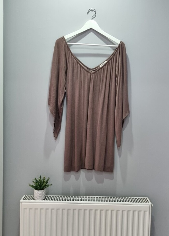 Vizon rengi yarasa kol detay balon etek standart beden elbise