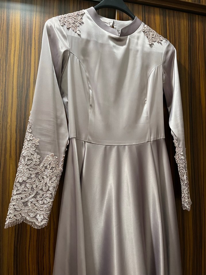 Vizyon renkte, Uzun Kollu Nakışlı, Abiye Elbise Özel dikim