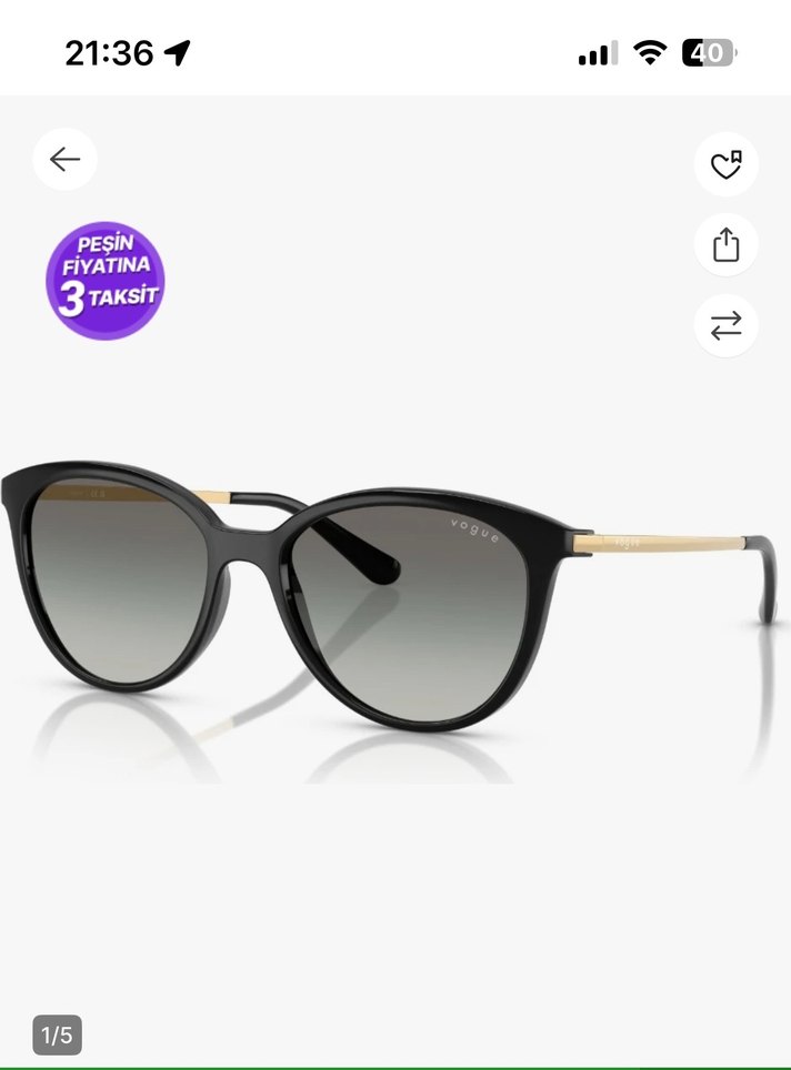 Vogue kadın güneş gözlüğü, siyah parlak çerçeve ve gri degrade camlarla klasik ve modern tarzı bir araya getiriyor. ️ Anti-reflekte, UV korumalı ve darbelere dayanıklı cam teknolojisiyle donatılmıştır. Bazı modellerde dijital ekranlara karşı filtreleme özelliği mevcuttur.