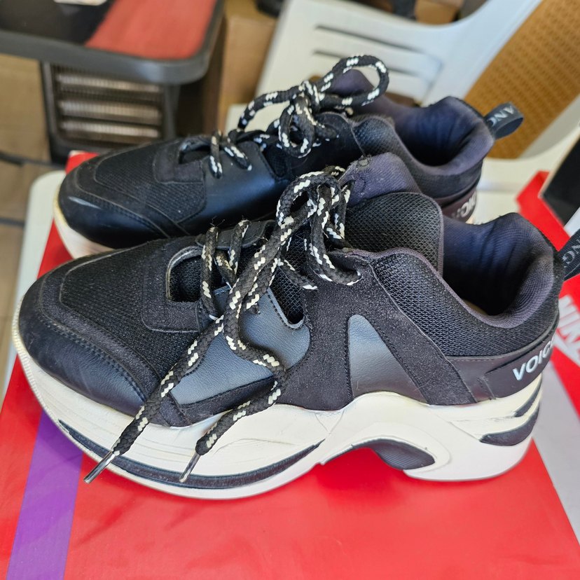 Siyah spor ayakkabı. İnce topuk ve kauçuk tabanıyla sokak modasına uygun şık tasarım. Kullanılmış üründür. Kullanımdan ötürü renk solmaları yıpranmalar vardır. Kesinlikle iade yoktur. Açıklama ve görselleri detaylı inceleyiniz. Ölçülerden emin olunuz.