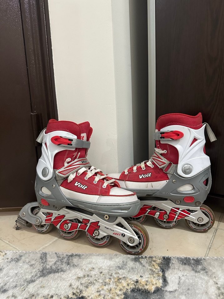 Kırmızı renk ,bağcıklı silikon teker spor patenleri, 36/40 numaraya kadar büyüyor. Converse tarzında ve desensiz tasarıma sahip. Sağ Arka tekerinde fren sistemi var , Sorunu yok tekerleklerini yeni yağladım alan kişinin çok severek bineceğine eminim. Pazarlık payı vardır makul teklifleri kabul ederim .Alan kişiye şimdiden hayırlı olsun