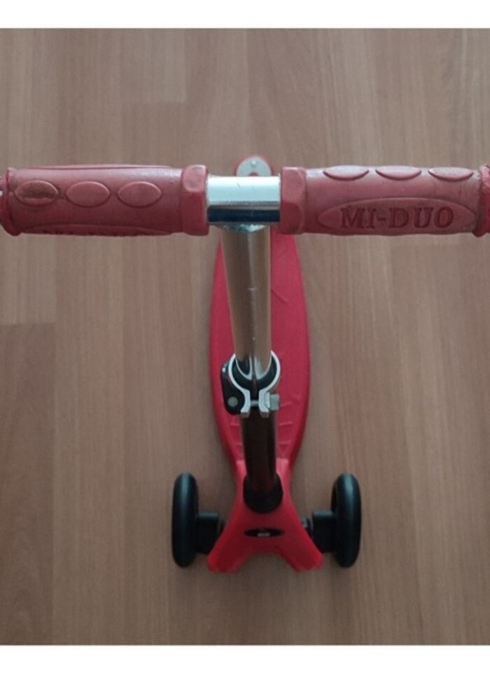 3 tekerlekli kırmızı scooter. Dönebilen Direksiyonu sürücüye tam bir direksiyon hakimiyeti verir. Sağlamlığı güven verir. +3, 16 yaşa kadar kullanıma uygundur. (2 yaş üstü) 50 km. hız sınırı altı için uygundur. Taşıma kapasitesi 35 kg. Eğlenceli, keyifli, spor aktivitesi, sağlıklı büyüme için tavsiye edilir. Çok az kullanılmıştır. Tertemiz, sapasağlam.