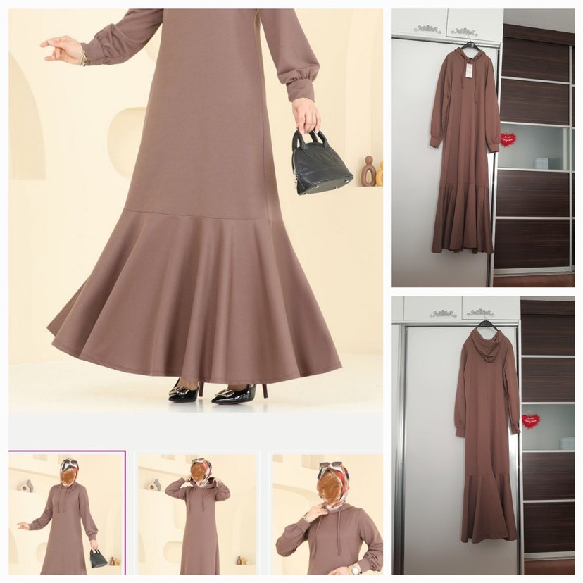 kol altı genişlik 62 cm. Boy 140 cm. etiketli yeni penye, pamuklu, eteği volanlı, sütlü kahve rengindedir.