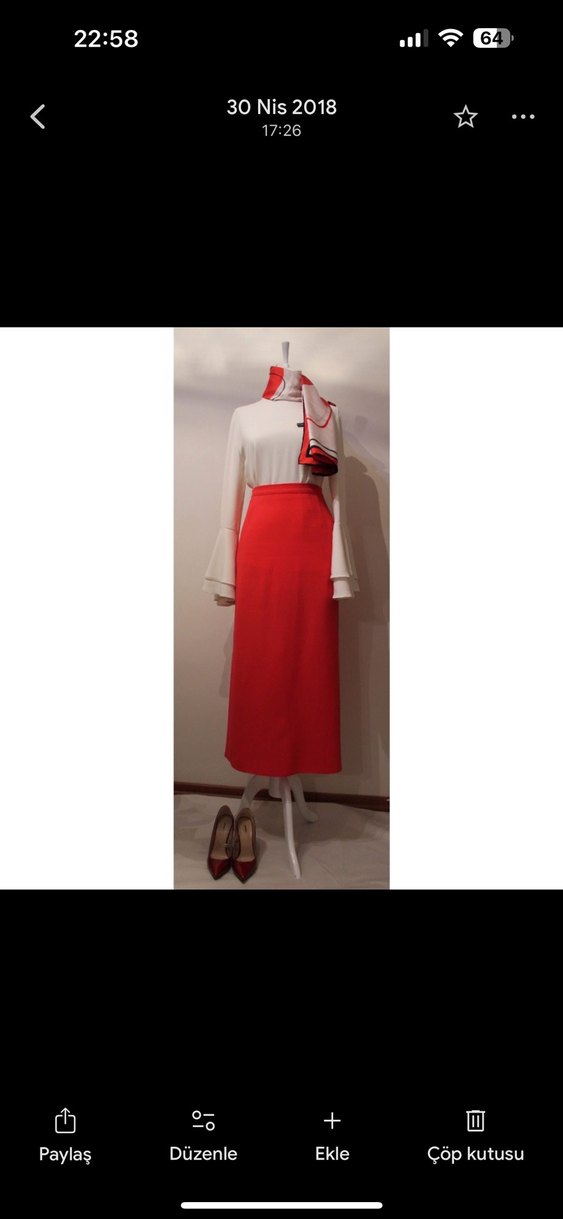 Volanlı gömlek ve nar çiçeği kalem etek