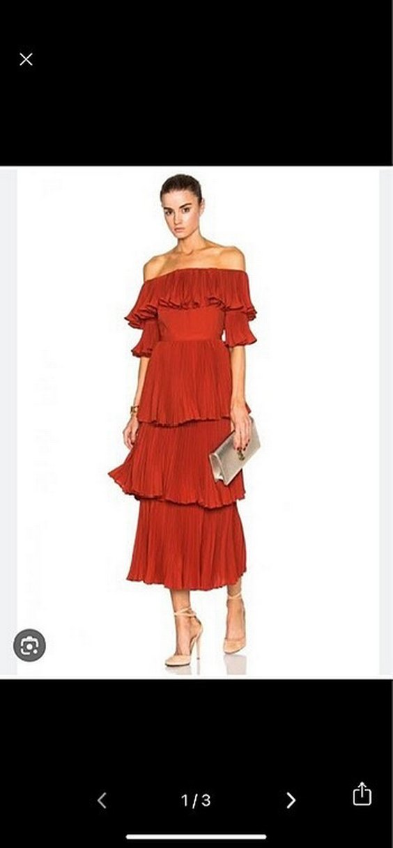 Kiremit rengi uzun elbise, straplez yaka ve bol kesim ile volanlı katmanlar içerir. Düğünler, etkinlikler için uygun, bohem tarzda. Bir kez giyildi. ETİKETİ L BEDEN FAKAT M BEDENE GÖRE YAPTIRILDI. Çok oturmasını istemeyen S bedenler ve M bedenler alabilir