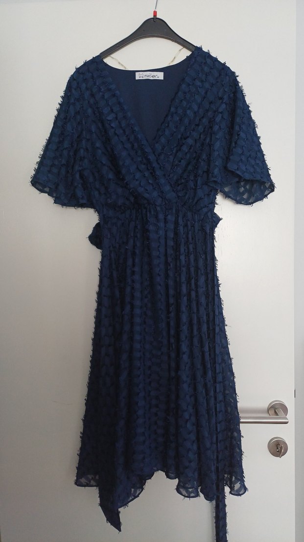 Volanlı Lacivert Elbise Hamilelikte de kullanılabilir