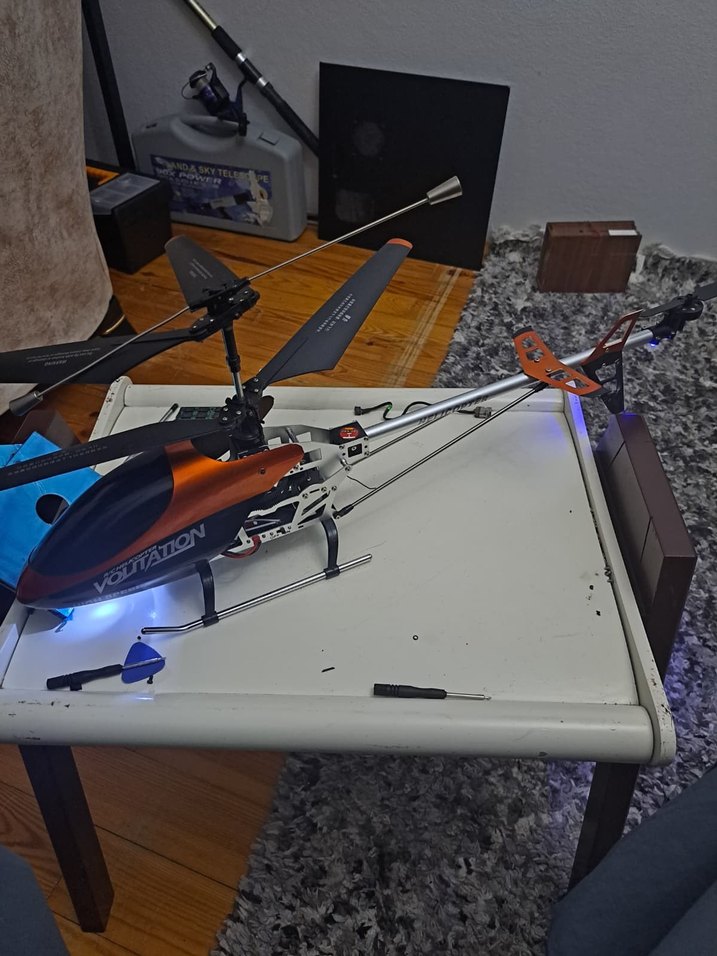 Volitation 9053 model büyük RC helikopter. Açma tuşuna basıldığında ışıkları yanmaktadır. Kozmetik olarak temiz, birkaç kez kullanılmış gibi duruyor. Kumandası ve şarj aleti yoktur. Bu nedenle çalışıp uçtuğu test edilememiştir. Kumandası olanlar için uygun ya da parça/proje amaçlı değerlendirilebilir. İade yoktur. FİYAT SONDUR. Yalova çevresine elden teslim tercih edilir,