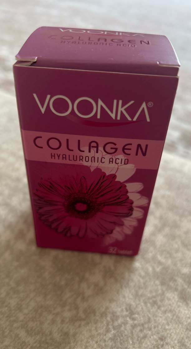 Voonka kadın , collagen ve hyaluronic acid içerir. Canlandırıcı ve nemlendirici etkili, çiçek desenli ambalaja sahiptir.
