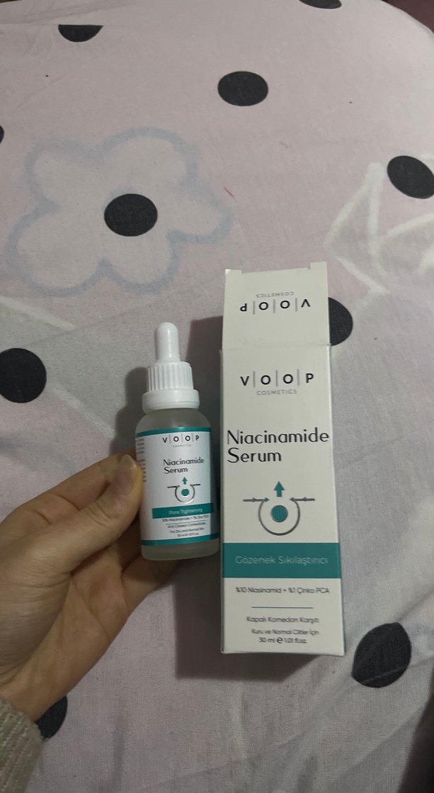 Voop Niacinamide Serum, cilt dokusunu iyileştirmeye ve gözenekleri küçültmeye yardımcı olur. Normal ve yağlı ciltler için uygundur.