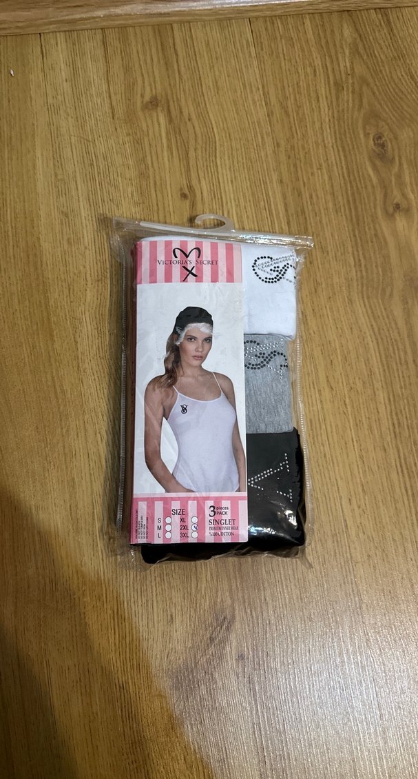 VS 3’lü Kadın Atlet seti, siyah, gri ve beyaz renk, ip askılı pamuklu kumaş