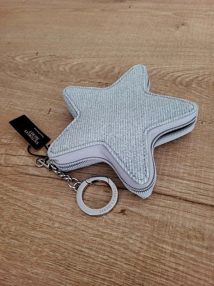 #victoria's Secret marka. orijinal. etiketli ve barkodlu. gümüş yıldız şeklinde cüzdan / anahtarlık. fermuarlı. ilandaki gibi ambalajlı şekilde gönderilecektir.