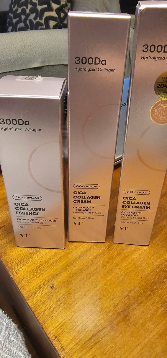 Cica Collagen Essence, Cream ve Eye Cream içeren, hidrolyze kollajen ile cilt bakım seti. ingiltere'den aldım....vt'nin en iyi collagen kremi...essence+eye+kremi....yaşım gereği vt 1000 ne geçtim...ihtiyaç fazlası..koruma bantları duruyor...son kullanma tarihleri resimlerde var...tr'de bulamayacağınız bir ürün..