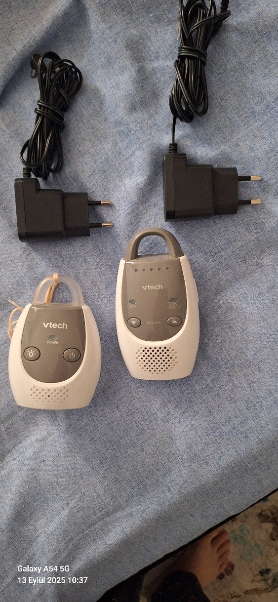 VTech bebek telsizi seti, iki ünite ve iki adaptör içerir. Ses kontrolü ve güç butonları bulunur. gece lambası özelliği mevcut. ses kalitesi güzeldir. kızım için almıştık ama uyanınca ses çıkartmadan etrafı seyrettiği için kameralı almak durumunda kaldığım için satıyorum. aktif olarak 2 3 ay geceleri kullanıldı. ebeveyn ünitesi şarjlı, bebek ünitesi prize takılı kullanılıyor.