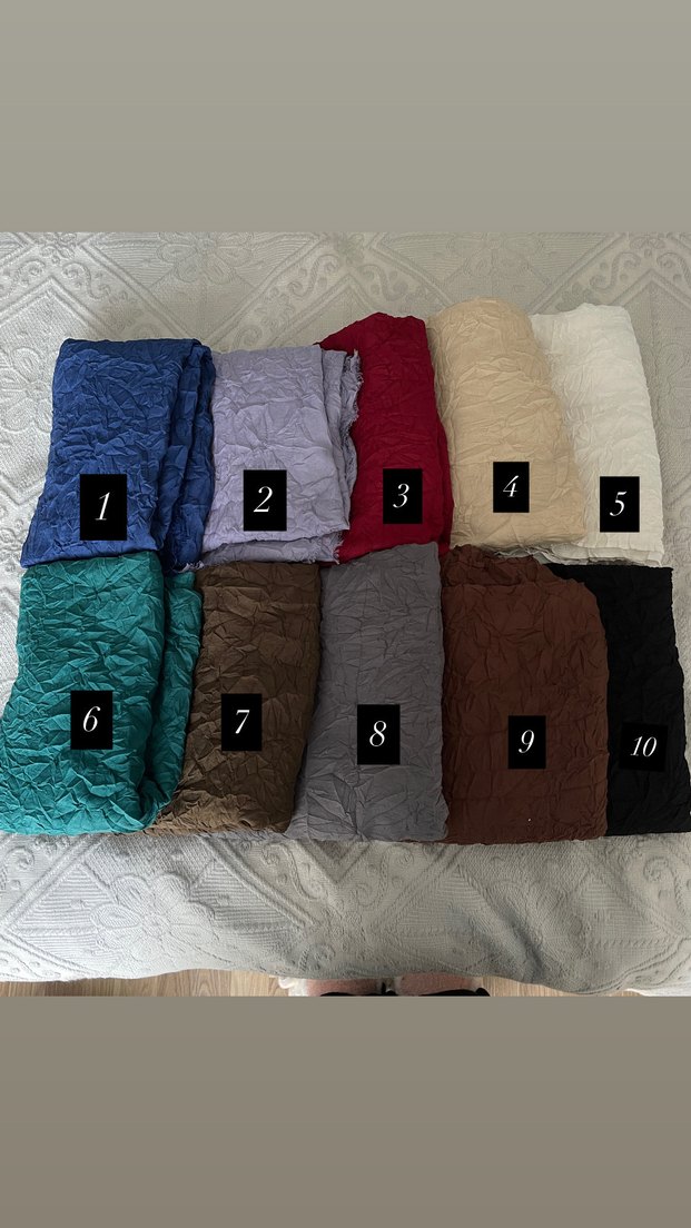 Vual krep (vual kraş) şallarım satışta! Toplam 10 farklı renk, hepsi tertemiz ve sadece 1-2 kez kullanıldı. Kumaşı hafif, dökümlü ve gün boyu rahat ettiren bir yapıda. Dolapta bekleyeceğine yeni sahibine yakışsın istedim. Renkleri çok canlı, hem günlük hem kombin kurtarıcı. Sorularınız olursa hemen yazın, yardımcı olurum ” Markası: QEF isteğe bağlı ilan açılır 8-10 SATILDI!!