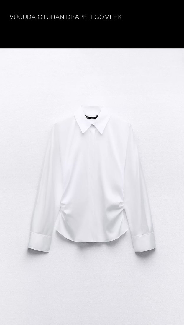 Düğmeli, yakalı, uzun kollu beyaz gömlek. Normal kesim, parlak görünümlü, ofis için uygun. Şık bir parça temiz kullandım.