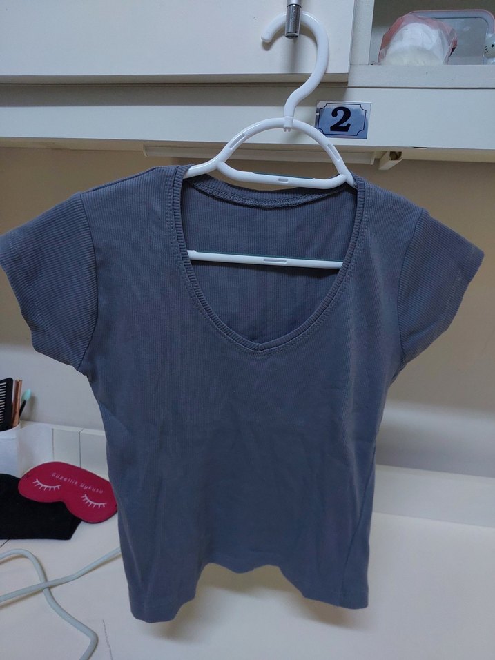 Pamuklu tişört vücuda oturan gri V yaka az kullanıldı