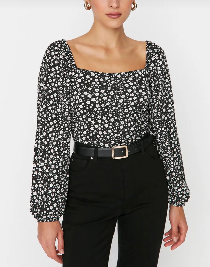 Vücuda Oturan Kare Yaka Bürümcük Bluz