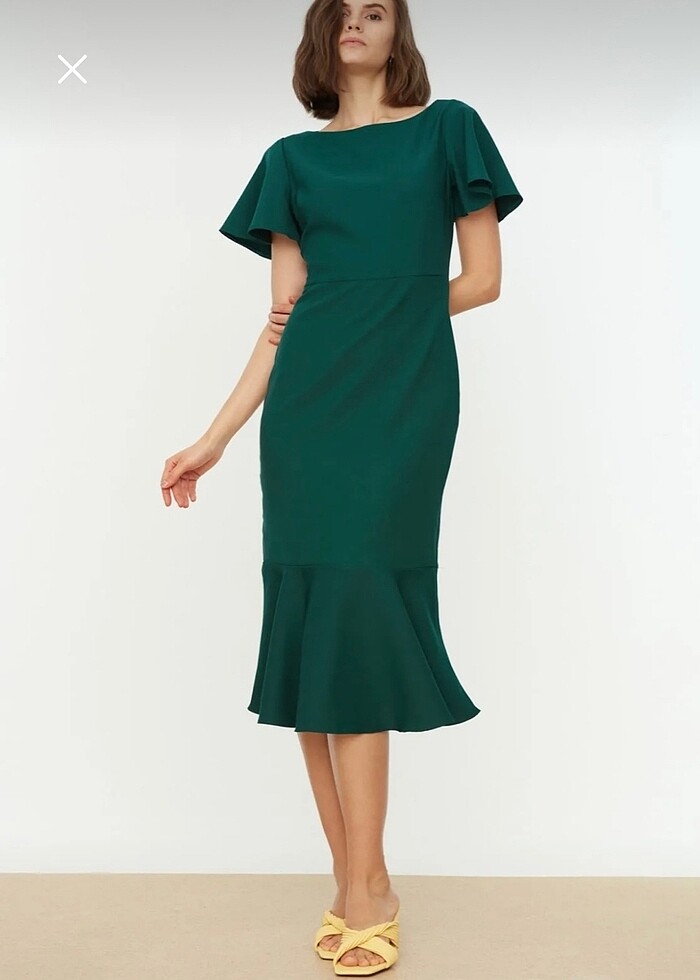 Vücuda Oturan Volanlı Midi Dokuma Elbise